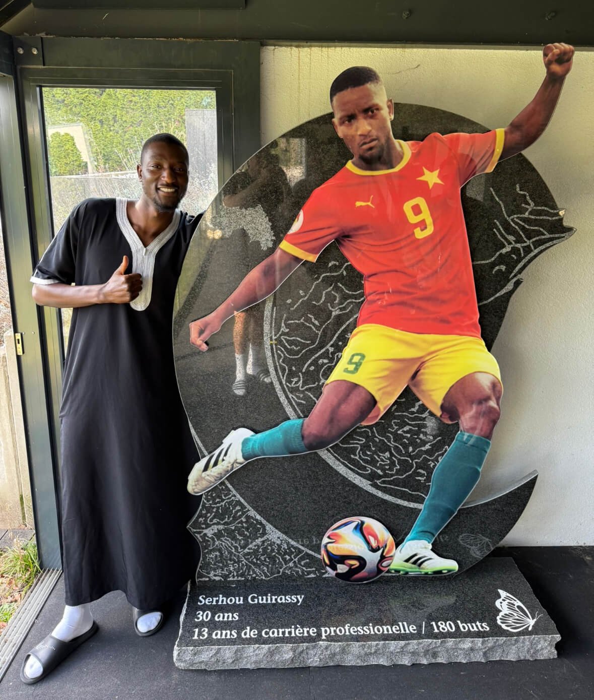 Notre entreprise a récemment eu l’honneur de concevoir et réaliser une statue unique en hommage au footballeur professionnel Serhou Guirassy, à l’occasion de son 30ᵉ anniversaire. Cette œuvre, taillée dans un élégant granit noir Impala, mesure 1,95 mètre de hauteur pour 1,20 mètre de largeur, incarnant à la fois la puissance et l’élégance du joueur. Chaque détail a été soigneusement travaillé afin de refléter fidèlement son image et son parcours, faisant de cette sculpture une pièce à la fois artistique et symbolique, témoignant de notre savoir-faire et de notre engagement à créer des réalisations d’exception.